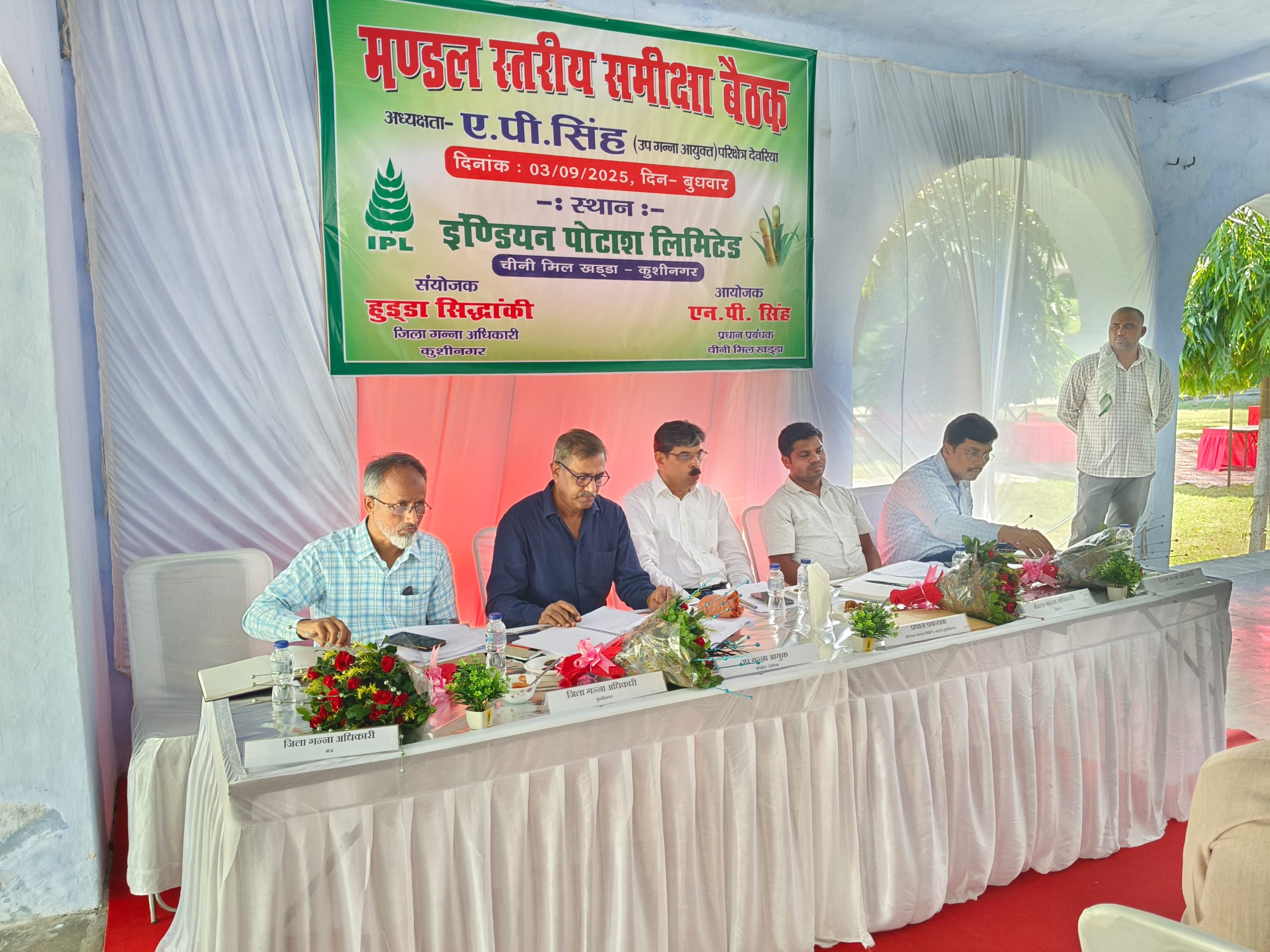 देवरिया मंडल के उप गन्ना आयुक्त श्री एन. पी. सिंह की अध्यक्षता में मंगलवार को आईपीएल चीनी मिल खड्डा परिसर में मंडल स्तरीय समीक्षा बैठक का आयोजन किया गया। बैठक में समस्त जिला गन्ना अधिकारी और चीनी मिलों के प्रतिनिधि मौजूद रहे। बैठक का उद्देश्य गन्ना किसानों की उत्पादकता बढ़ाने, नवीन तकनीकों के प्रयोग को प्रोत्साहित करने और फसल से जुड़ी समस्याओं का समाधान खोजना रहा।