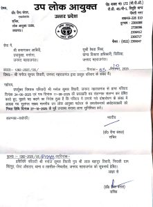 पहला पत्र संख्या 1282-2025/04 के तहत तत्कालीन जिलाधिकारी महराजगंज (वर्तमान जिलाधिकारी वाराणसी) श्री सतेन्द्र कुमार झा को संबोधित है, जिसमें निर्देश दिया गया है कि शिकायत में लगाए गए आरोपों पर साक्ष्य सहित आख्या प्रस्तुत की जाए।