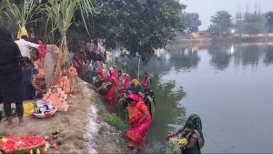 भारतीय संस्कृति की अद्भुत झलक: डूबते सूर्य को अर्घ्य देकर छठ महापर्व की उपासना